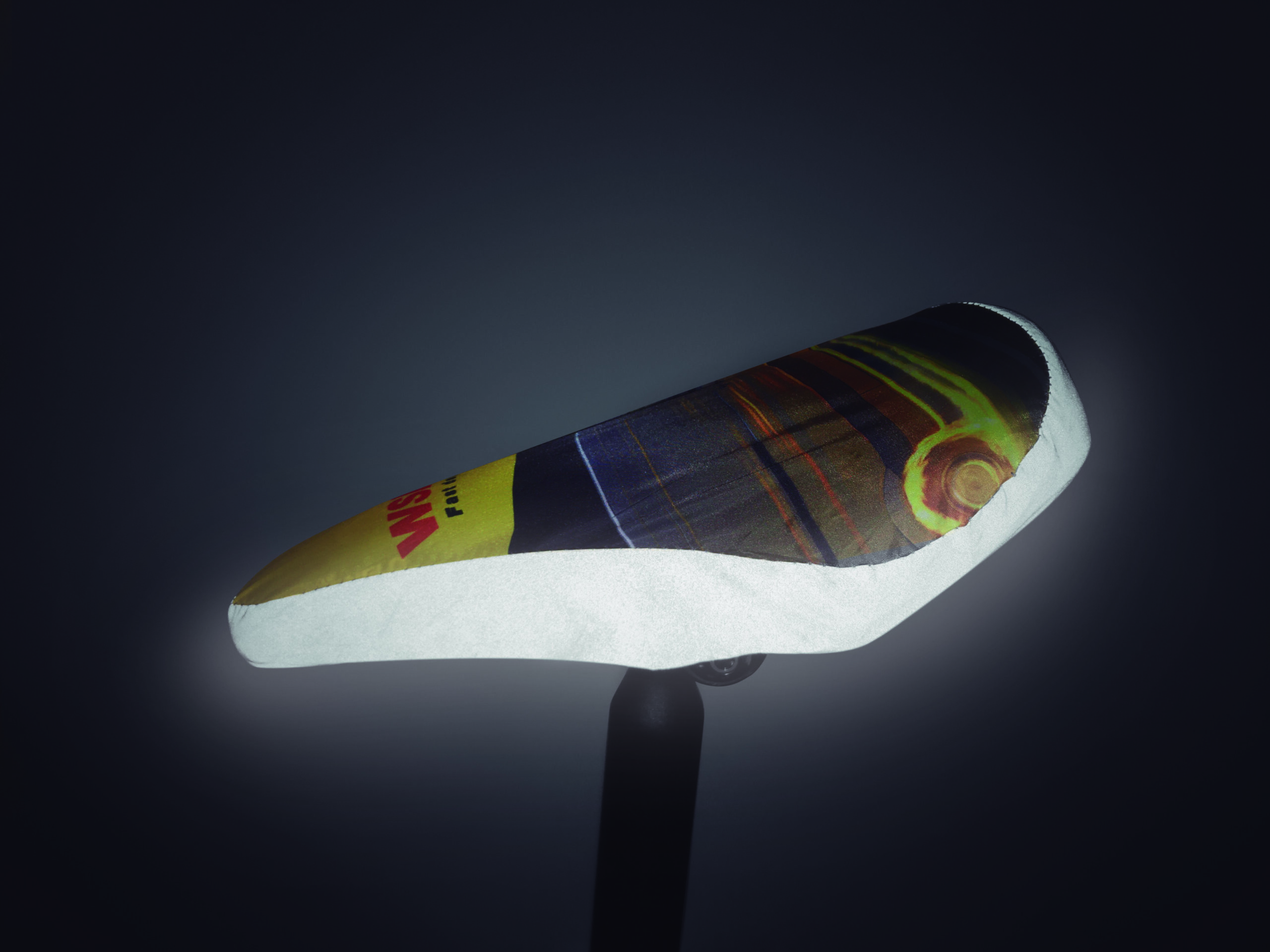 210D polyester saddle cover with reflective fabric on the sides and black or white elastic band to fit most seats. On top of its protective function, the saddle has ample space for your promotional message on the top. Dimensions: approx. 24×26 cm.